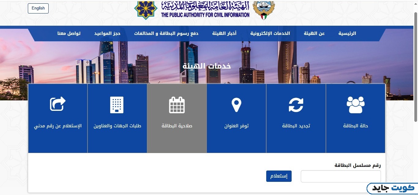 يمكنك الاستعلام عن حالة البطاقة المدنية في الكويت من خلال اتباع الخطوات التالية: [2]
